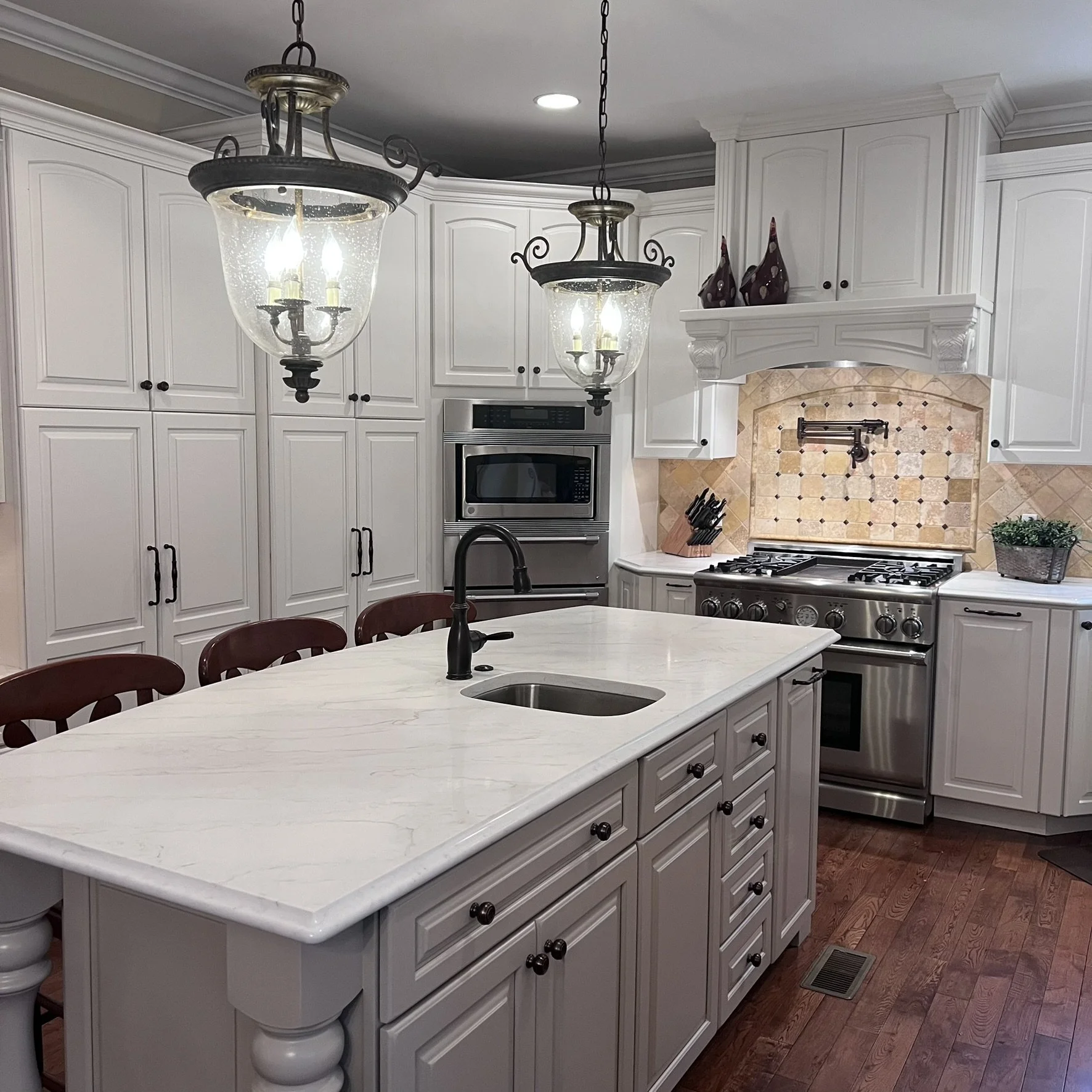Revitalize your kitchen or bathroom with professionally refinished cabinets featuring a flawless spray finish for a fresh, like-new look at a fraction of the cost.